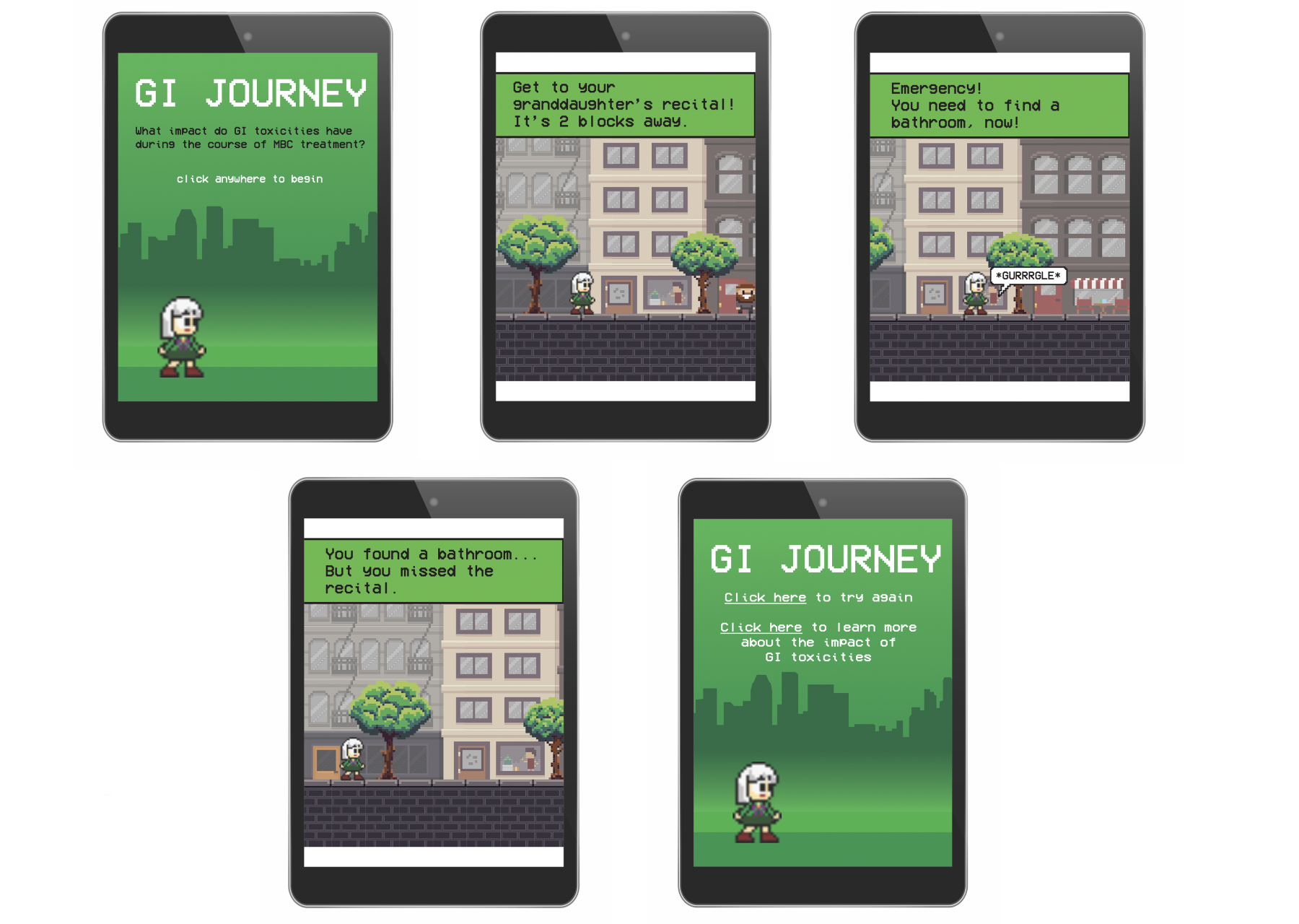 My idea was to gamify this boring unbranded campaign by literally making a video game microsite out of the ads. I called it the "GI Journey" and the goal was to make it to the bathroom in time.